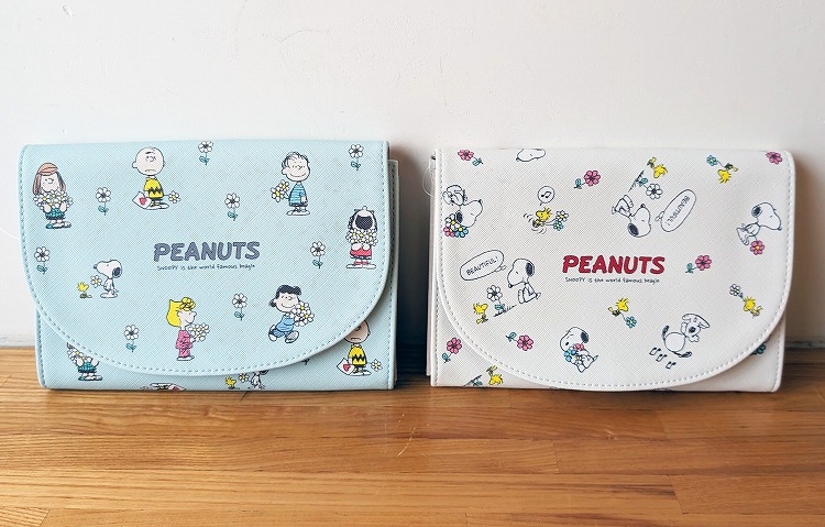 ブルーにはピーナッツ・ギャング、ベージュにはスヌーピーとウッドストックのイラストがデザインされています。