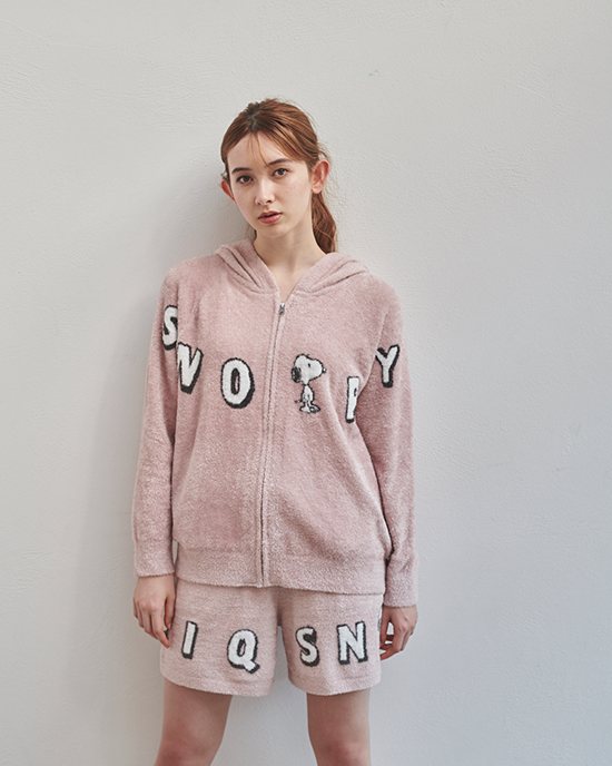 なめらかなタッチが人気の‘スムーズィ’素材にSNOOPYのロゴをぐるりと配置した
