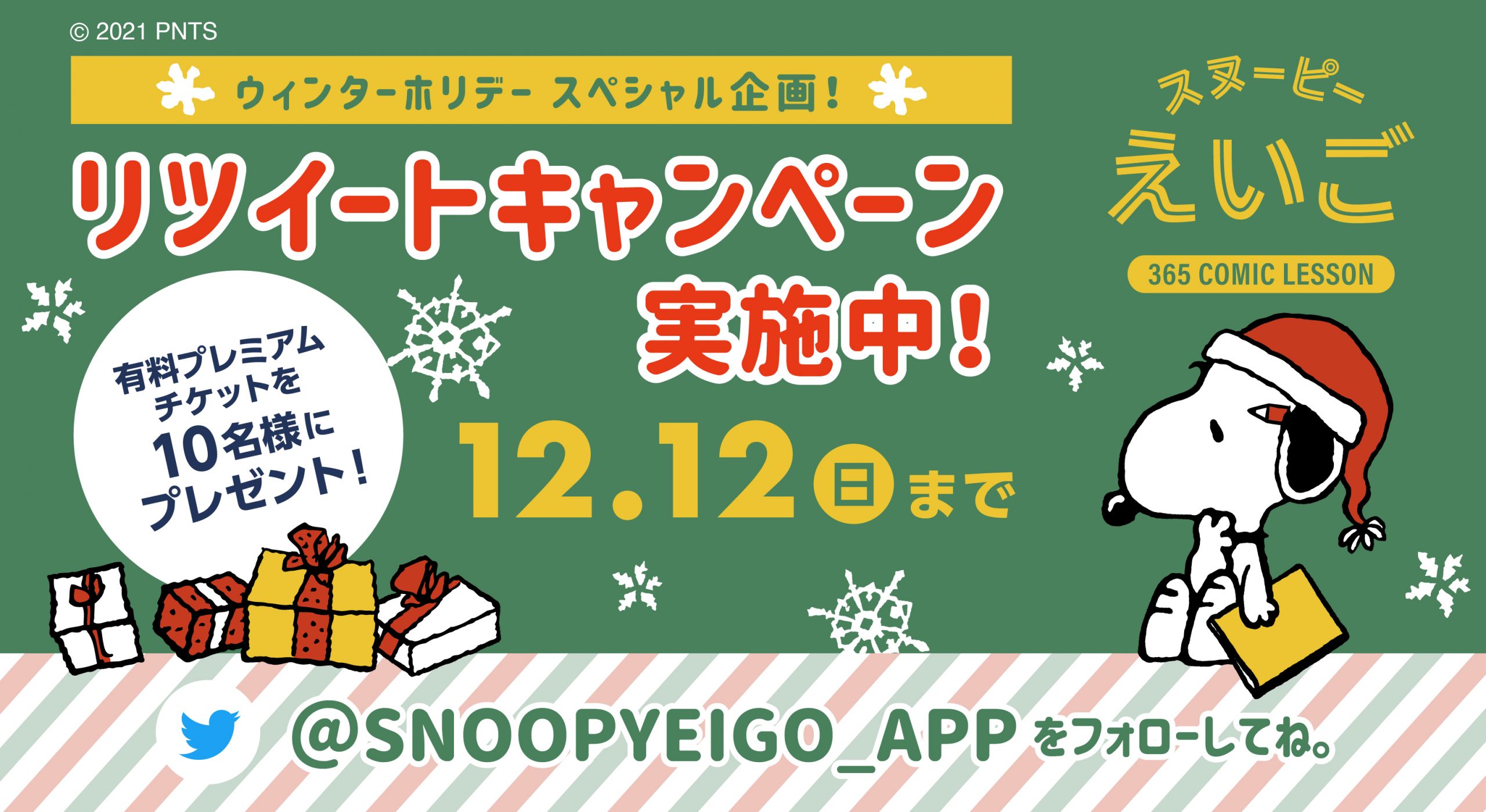 公式アカウント(@SNOOPYEIGO_APP)をフォローして、キャンペーン投稿をリツイートすると、