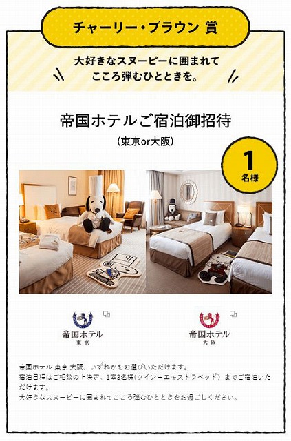 「帝国ホテルご宿泊御招待(東京or大阪)」!!
