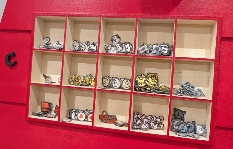 下の引き出しには「アルファベットワッペン」、屋根の部分にはスヌーピーやウッドストックをはじめ、ピーナッツ・ギャングやドッグハウスなどのモチーフがキュートな「キャラワッペン」が♪