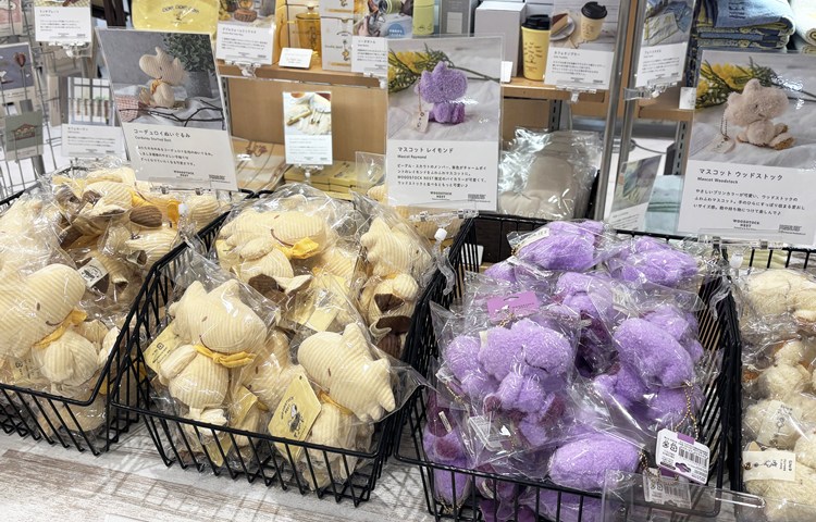 ぬいぐるみ小皿といった雑貨をはじめ、トートバッグ、パーカーなどのアパレルも充実しています。