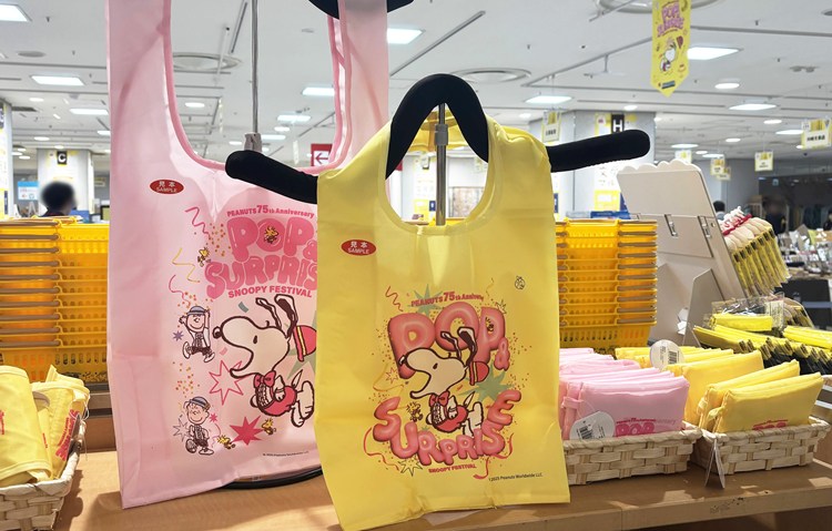 ポップな色合いが楽しい、小さくたためる大きなエコバッグは、ジェイアール名古屋タカシマヤ先行発売。