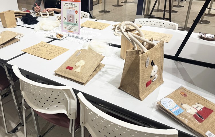 こちらは羊毛フェルトをチクチクとさしてスヌーピーの模様を生み出すトートバッグ。