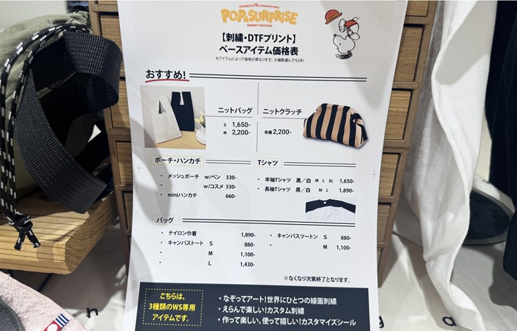 ニットバッグやニットクラッチに刺繍やDTFプリントが施せるワークショップも。