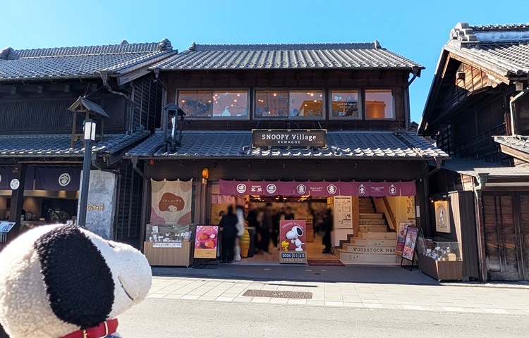 JR、東武線・川越駅から、東武バスで約10分ほどの「一番街」バス停からすぐの「SNOOPY Village 川越」。