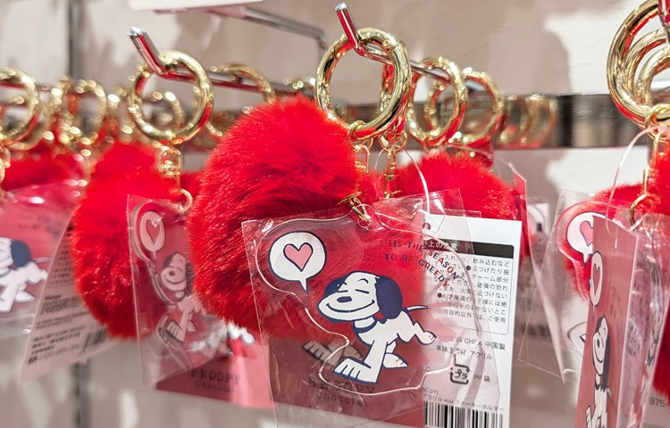 満面の笑みを浮かべるスヌーピーのアクリルキーホルダーに、もふもふのハートがセットになったキーホルダーは存在感たっぷり。