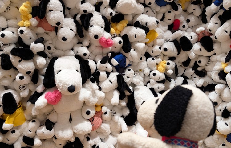 スヌーピーだらけの、「スヌーピー・ぬいぐるみウォール」!