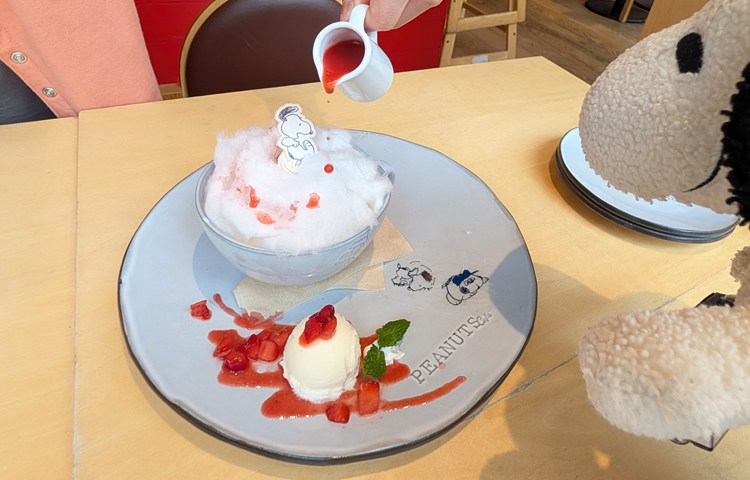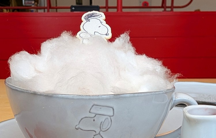 スヌーピーが雲の上で遊んでいるみたいなコットンキャンディのトッピングに、ついつい何枚もお写真を撮ってしまう。