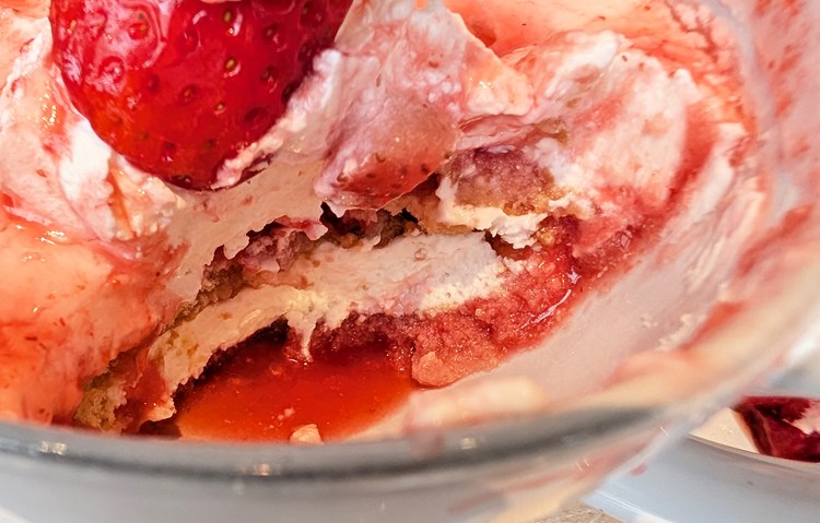 中から鮮やかなイチゴのティラミスが現れます。