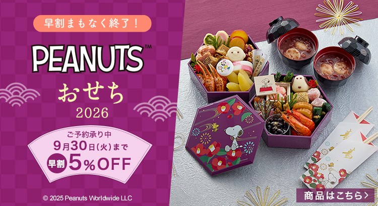 【9月30日まで5%OFF!】毎年に人気の「スヌーピー」デザインのおせちの早割がまもなく終了!(ベルメゾン)