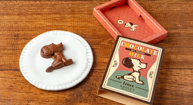 にっこり笑顔が可愛い、50年代デザインのスヌーピー型チョコレート。