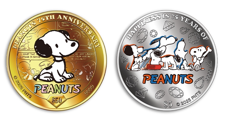 限定発行!ピーナッツコミック誕生75周年「ダイヤモンド・ジュビリー」を祝う金貨・銀貨が登場。