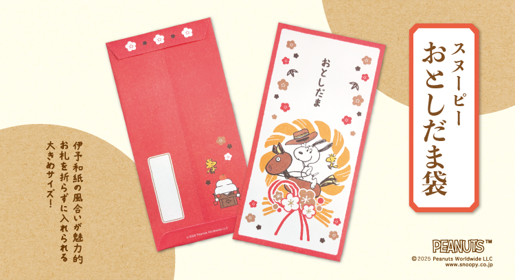 お正月にぴったりの、伊予和紙の風合いが魅力的なスヌーピーのぽち袋が登場!