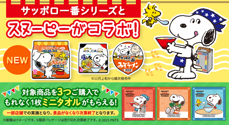 サッポロ一番シリーズとスヌーピーがコラボ!新商品の発売やミニタオルがもらえる店頭企画も!(サンヨー食品株式会社)
