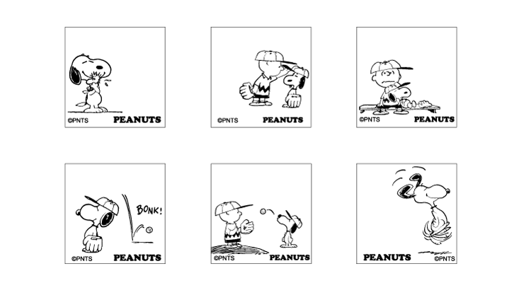 スヌーピーの6種図柄からお好きなイラストに文章や名前を入れて、あなただけのオリジナルスヌーピースタンプがその場ですぐできます。