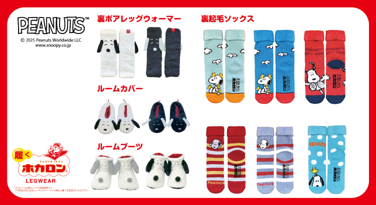 ふんわりあたたかい履き心地にPEANUTSかわいいデザインをプラス。