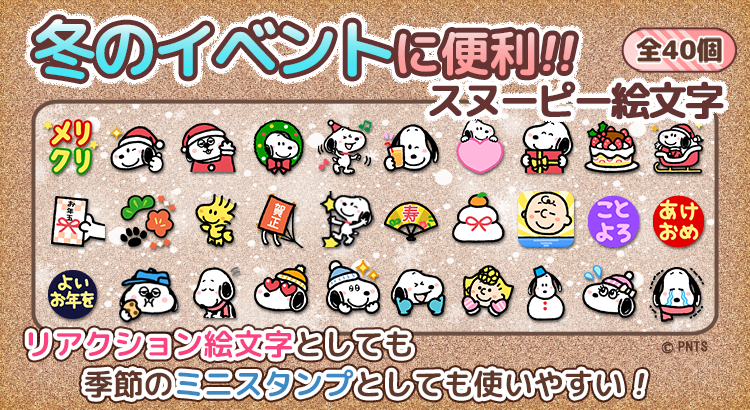 LINE 『冬のイベントに便利!スヌーピー絵文字_』登場!(株式会社テレビ東京コミュニケーションズ)