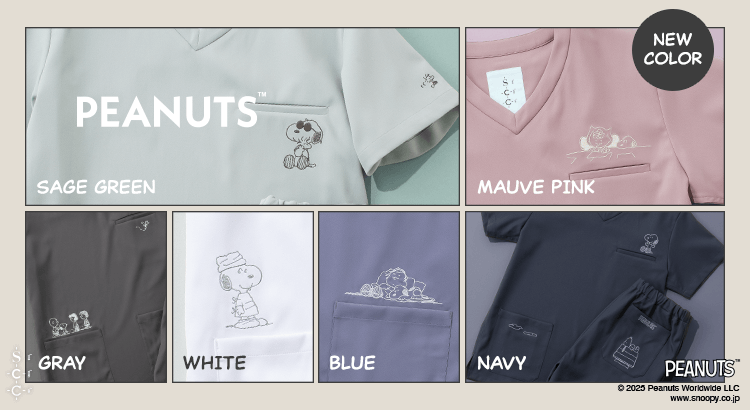 『PEANUTS』とメディカルアパレルブランド:クラシコの「Scrub Canvas Club」コラボによる医療用スクラブに新色が登場。