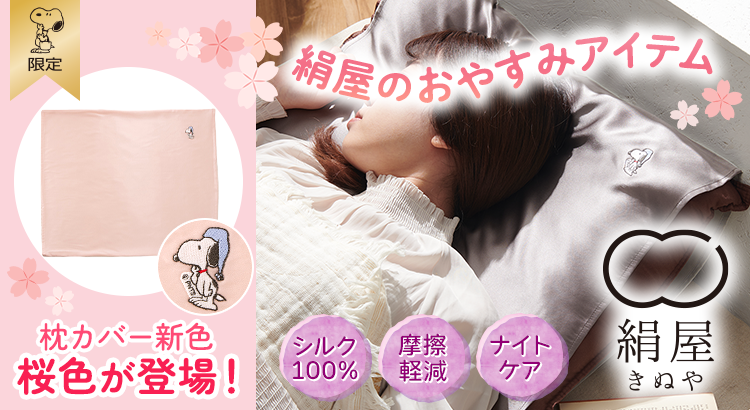 【おかいものSNOOPY限定】絹屋 シルク枕カバーに新色の桜色が新登場!(テレビ東京コミュニケーションズ)