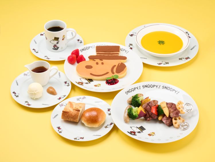 ①「スヌーピー スペシャルディナー」をカフェクベールにてご用意いたします。 ②ご朝食はルームサービスにて「スヌーピー・スペシャルブレックファスト」をご用意。プラン限定の特製「すぬーパン」をご用意。