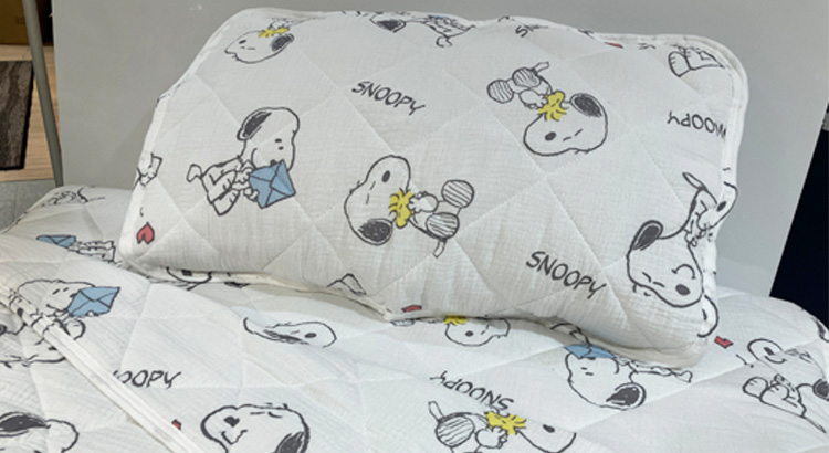 スヌーピーのガーゼ素材寝具がシャンブル店舗にて販売中!