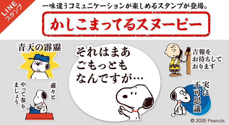 LINEスタンプに新作 『かしこまってるスヌーピー』 が登場!(株式会社テレビ東京コミュニケーションズ)