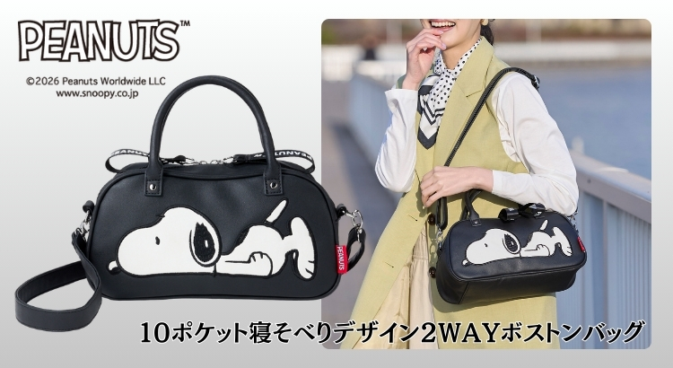 スヌーピー 10ポケット寝そべりデザイン2WAYボストンバッグ(ニッセン)