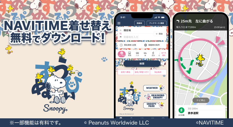 iOSおよびAndroid OS向け総合ナビゲーションサービス『NAVITIME(ナビタイム)』アプリの「着せ替え」機能アイテムに「スヌーピー(モダンな和柄)」が登場!