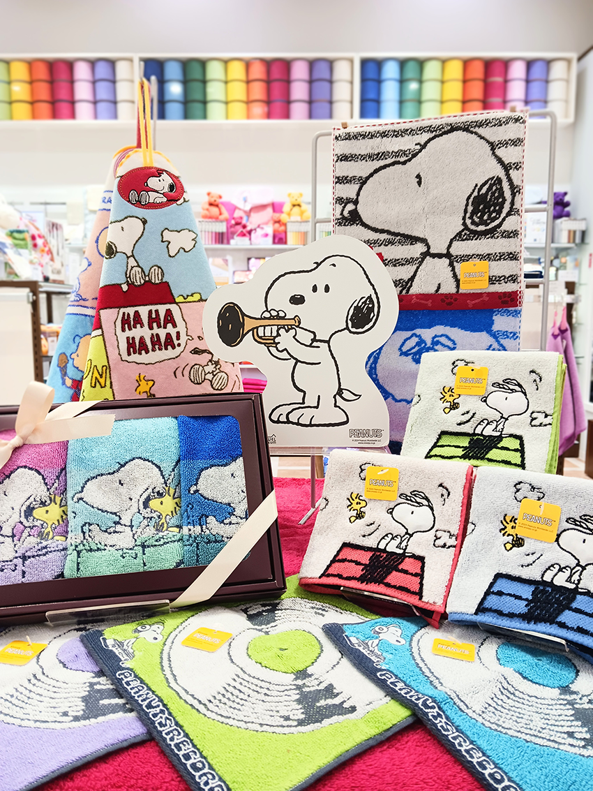 「キラキラのアニバーサリー」をテーマに、限定タオルや限定グッズでスヌーピーと仲間たちの華やかでキラキラなイメージのディスプレイに挑戦いたしました。