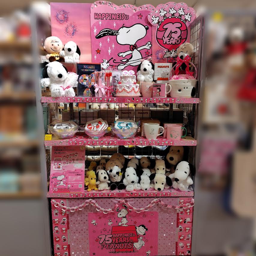 今回は『誕生75周年』を祝い、またスヌーピーの世界観を大切に、そして、ファンの方々に喜んで頂けるよう、普段取り揃えていないラインナップを中心に展開致しました。